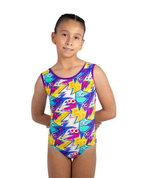 Su vibrante diseño lleno de destellos y formas dinámicas transmite fuerza, velocidad y precisión, inspirado en la emoción de dominar cada rutina sobre la viga. Los colores intensos crean un look llamativo que captura la esencia de la gimnasia: potencia, alegrÃa y determinación.