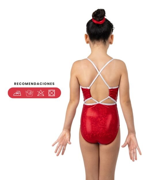 Este leotardo explosivo en tonos amarillos, rosas, naranjas y morados fue creado para las gimnastas que entrenan con pasión, que transforman cada caída en impulso y cada reto en una nueva oportunidad de levantarse más fuertes.