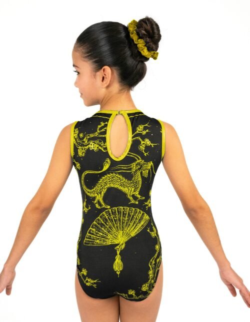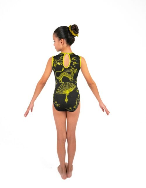 Leotardo para practicar gimnasia. Hermoso diseño sublimado en nylon, confeccionado de forma artesanal.