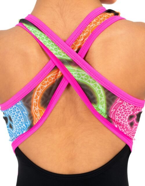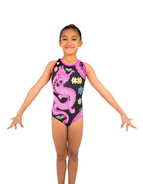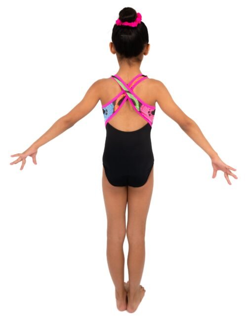 Leotardo para practicar gimnasia. Hermoso diseño sublimado en nylon, confeccionado de forma artesanal.