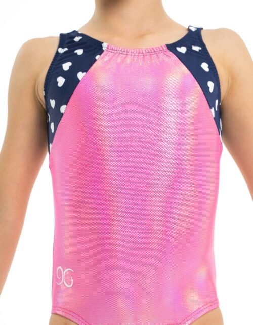 Leotardo para practicar gimnasia, manga corta. Hermoso diseño sobre tela mystique, con estampado al frente.